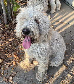 Egy tanyáról hoztuk őt el, aggódva, hogy hogyan fogadja a két komondor Csaplár és Zúzmara. Intelligenciájuknak köszönhetően simán ment a befogadás.